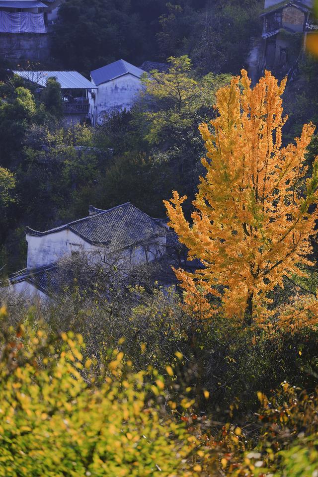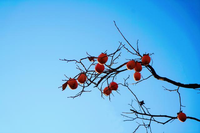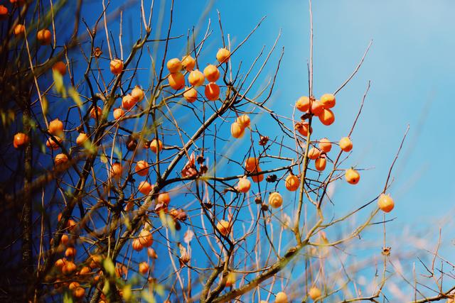 深秋时节,田里的斑斓渐渐退去,而另一种风景在晴空下。那一棵棵高大的柿子树,在田野上,在山坡上,把这小山村妆点的如诗如画,那是安徽的姬川。