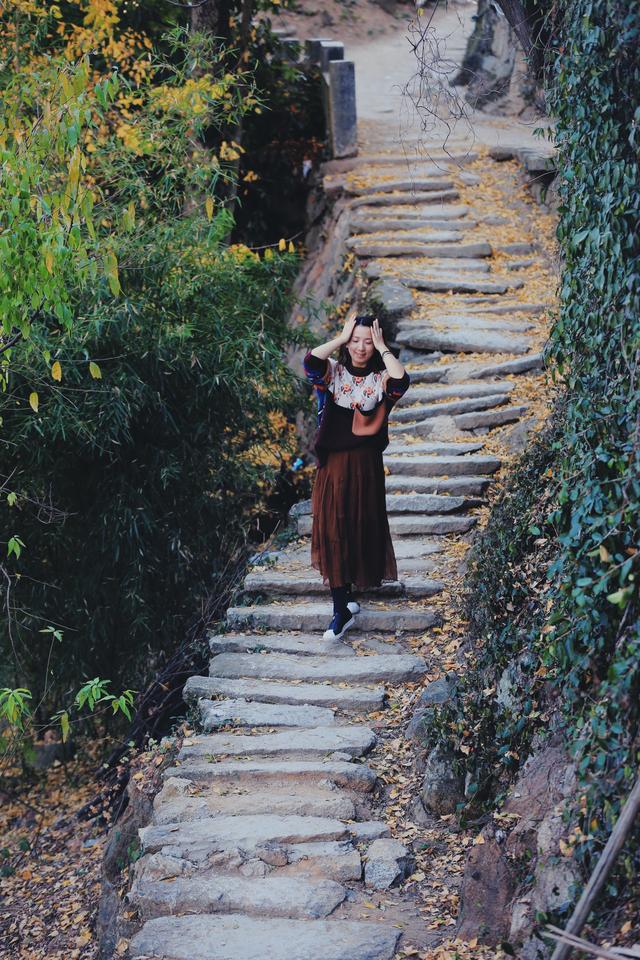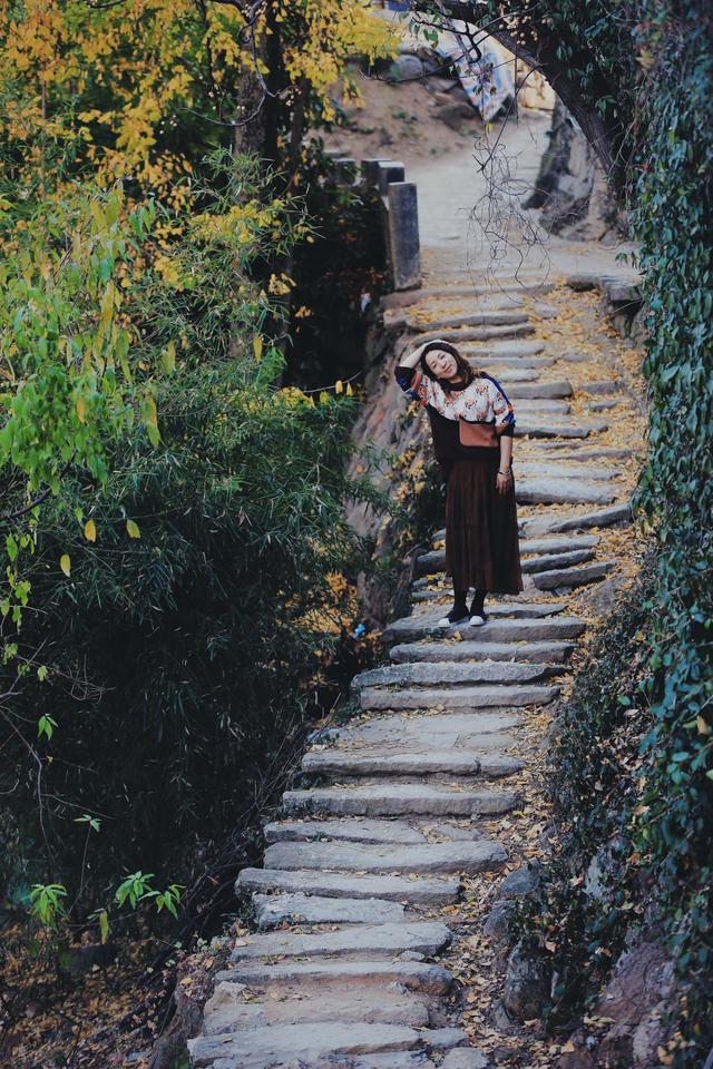 顺着路一直往前走,一直可以走到对面的一个观景台。站在那高处望上一望,那秋天的色彩呀,我该用什么语言来形容呀!