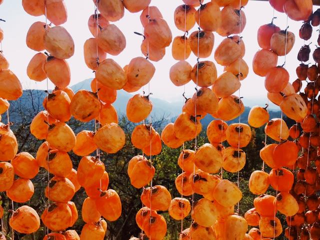 正是灯笼柿成熟的季节,在姬川灯笼柿基地,当地村民有的忙着采柿子往家里运,有的在削柿皮、拴柿陀、制柿饼。