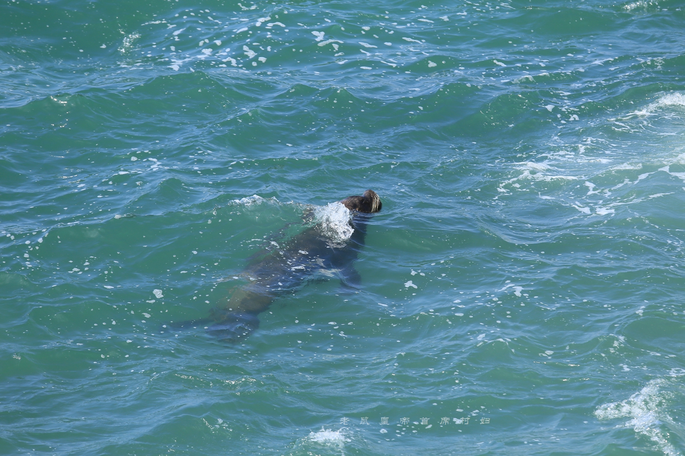 再一看,还有一只海狮在水里游荡嬉戏,估摸着是男女朋友吧……不然,谁会那么无聊搔首弄姿这么久呢?