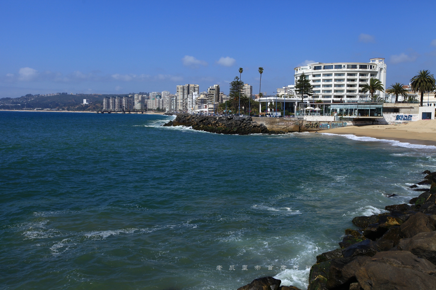 在距离智利首都圣地亚哥120公里处的南太平洋海边,坐落着两座著名的度假小城,一座是之前写过的世界遗产瓦尔帕莱索,另一座是今天将会介绍的比尼亚德尔马。从地理位置上来说,这两座城市浑然无间,毕竟,相距仅9公里,但在性格上,却是泾渭分明。
