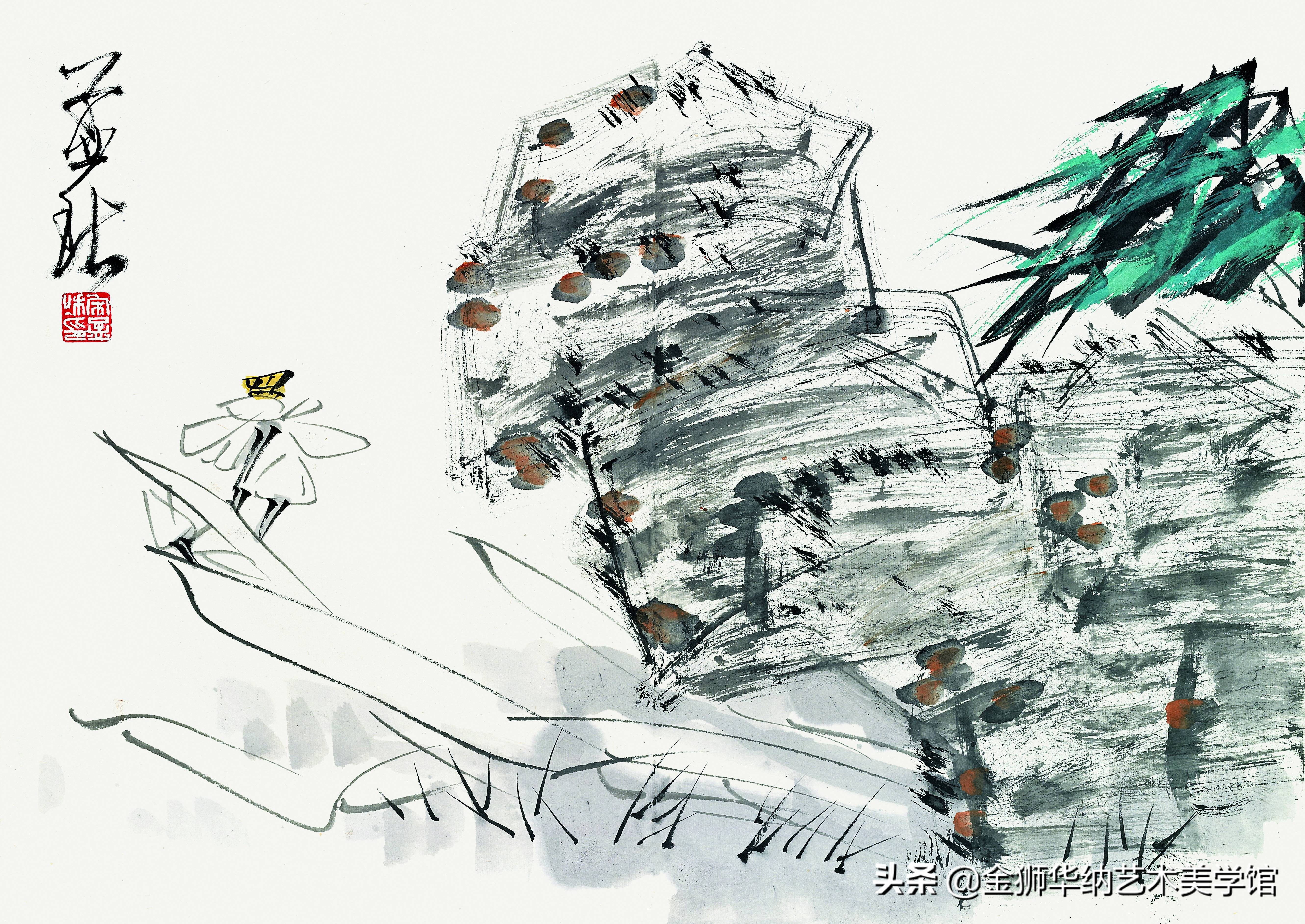 纵观孟秋画册中的作品,展现的恰是其不同时期跋涉的足迹:读本科之前已入校进修三年,研习人物、山水、花鸟画,从孜孜临摹到外出写生,铺就了艺术之塔的第一层基石;本科期间,主攻花鸟专业,写意画由明清乃至近现代都有吸收和借鉴,海派及扬州画派写意画的清雅和静逸,在其早期创作中也有所体现;读研期间,跟随导师张之光先生,张老师对形式美的把握,对形式语言的驾驭,都给予宋孟秋更多的滋养,但由于其自身对绘画过于力求完美,一度陷入谨小慎微的笔墨状态之中,每作一图,兢兢于形和技法的完备,一定程度上丧失了写意画的“书写性”特征,自此陷入一段徘徊时期。我想,技法固然重要,但不能唯技法论,应该是通过笔墨带出来的形、意、情,这样才能把“绘画性”发挥到一个极致,技法和精神性是表与里的关系。此后一段时期,宋孟秋通过理论研究和对前期作品的反思,从对绘画书写性和笔墨精神的追求以及中国画强调抒写性灵这一最核心的艺术精神之中获得启发,使自己广收并蓄,思维由固化进入一个跳跃起伏、开阔鲜活而有生命力的状态中,这从他近两年的作品中,明显能感觉到这种变化,这是特别值得肯定和赞扬的。