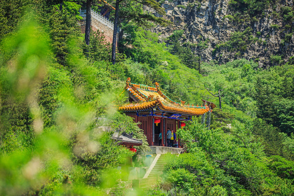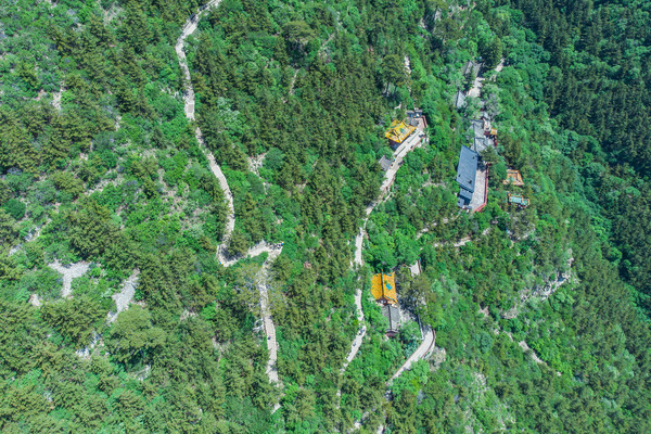 可以选择从这里继续向上直接抵达天峰岭,也可以选择向右走游览庙宇群。