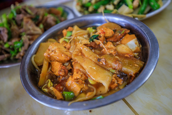 据说这是一家远近皆知的当地特色美食餐馆,餐厅选用了当地的菌类食材加上面皮、豆腐、碎肉等一起烩制而成,搭配新鲜可口的拌菜、猪肘肉、猪脚肉等,这种吃法在当地颇受好评,大家如果有机会前往千佛岭景区的话可以去尝试一下,相当接地气的一餐。