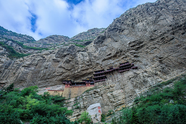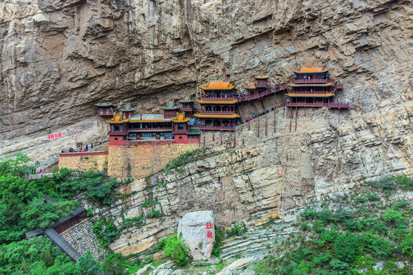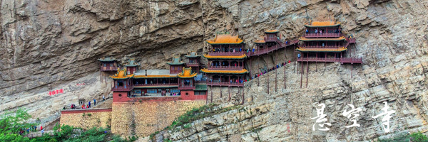 悬空寺位于大同市浑源县恒山翠屏峰绝壁中,距大同市区近65公里。寺庙始建于北魏晚期,是国内仅存的儒、释、道三教合一的寺庙。悬空寺原叫“玄空阁”,“玄”取自于 中国 道教教理,“空”则来源于佛教的教理,后改名为“悬空寺”,是因为整座寺院就像悬挂在悬崖上,在汉语中,“悬”与“玄”同音,因此得名。