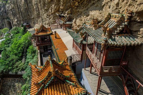 悬空寺的奇迹也是选址的奇迹。它的选址烘托了“悬空”效果,还为悬空寺增添了许多优势。
