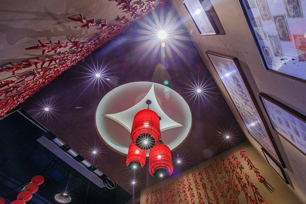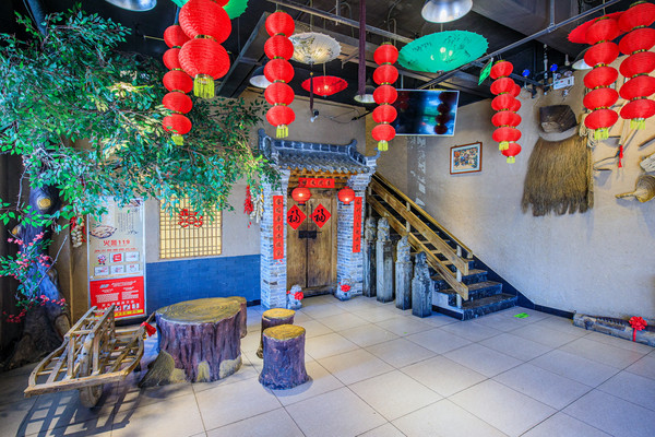 餐厅装饰的很新颖,入口墙上挂着各种农具,单间也是地方特色的装修,门口挂着丰收的果实,尽显山西风光。