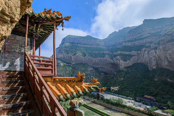 深处同样有一个规模较小的悬空寺,当然无论从规模还是精美程度无法与真正的悬空寺相媲美,可见当时开山凿壁建寺也是僧人比较常见躲避战火的办法。