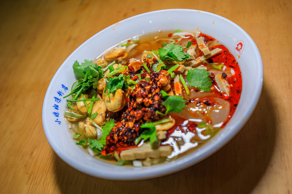 浑源凉粉:这是山西浑源的特色美食。浑源凉粉又白又细又利口,以土豆淀粉为原料,再加入适量的明矾,搅成糊状,在火上滚熟,凉冷倒出即成,故又名粉砣,再加上莲花豆、豆腐干、辣椒油、葱蒜香菜等调料,莲花豆香酥可口,豆腐干嚼得过瘾,而辣椒油辣而不涩,可谓色香味俱佳,让人胃口大开。