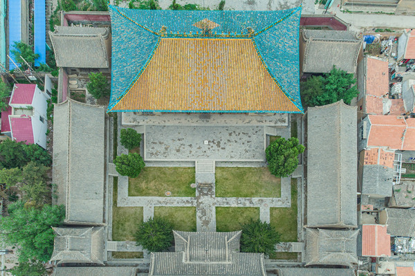 “九天宫”,又称“娘娘庙”。正殿两旁建有配殿和钟鼓楼,整体结构对称,规模仅次于恒宗殿,可见九天宫的特殊地位。
