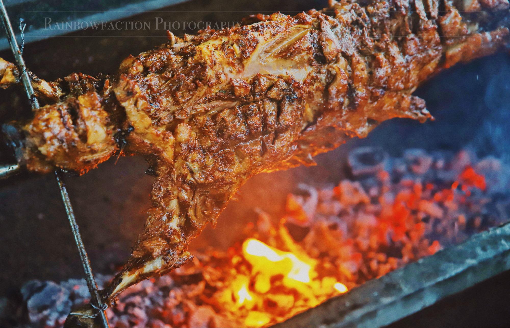 强烈推荐大家尝一尝坝上地道的烤全羊,提前腌制入味的羊肉放入烤炉中翻滚熏烤,第一炉出锅后,羊皮烤至焦黄流油,是最香的第一口味道。