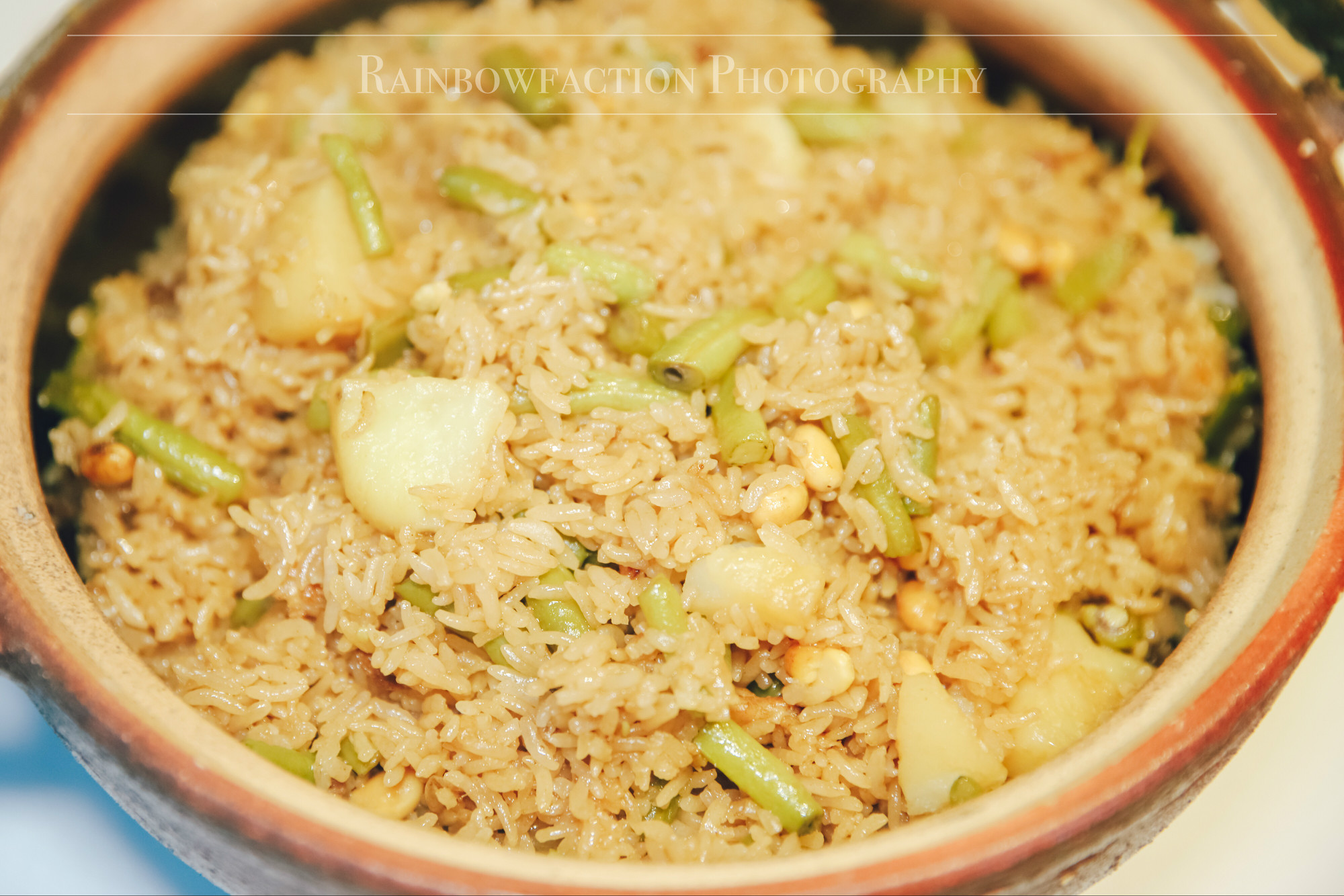 最后的精华与粒粒分明的米饭旋转翻炒,再倒入砂锅中保温上桌,一掀开锅盖,所有人就被扑鼻的香气震惊到了,毫不夸张地说,两碗起——是对这份扁豆焖饭最起码的尊重!