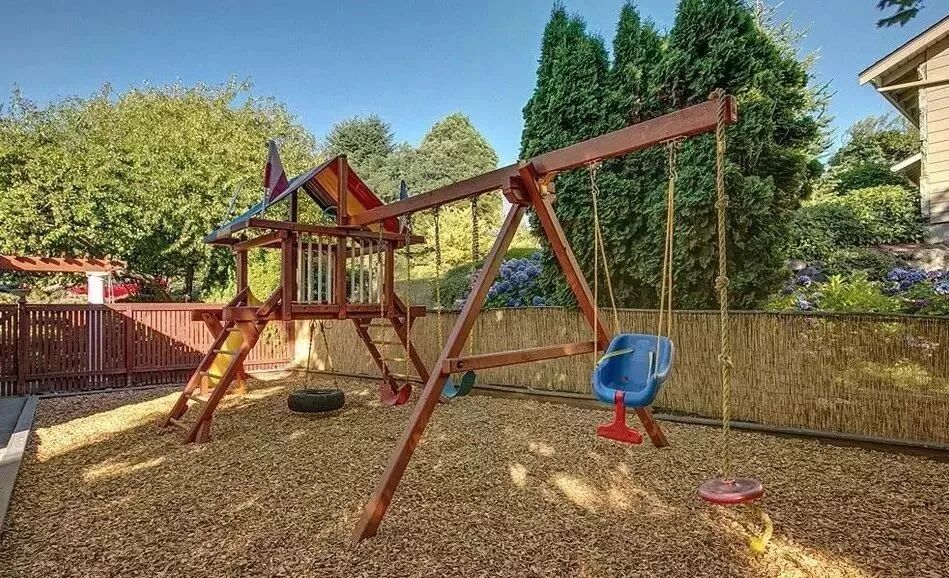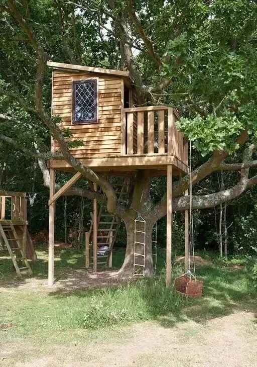 花园里可能会有一些果树,方便孩子们采摘,或许这也方便他们长大后爬树哈!