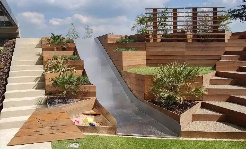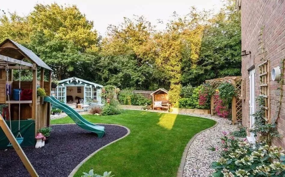 阳光明媚的花园里,最惬意的事情莫过于看孩子自由嬉戏的奔跑了。看见孩子开心,是为人父母最欣慰的事了。但在花园里,也许这样设计安排,会更加让孩子安全,也让父母更加放心。