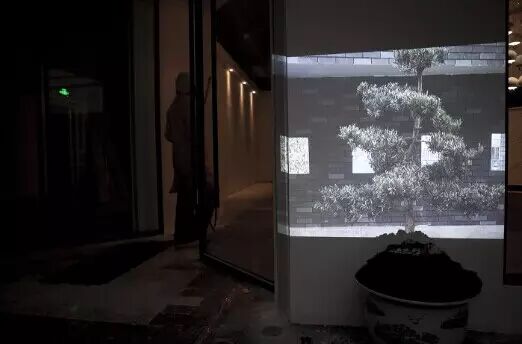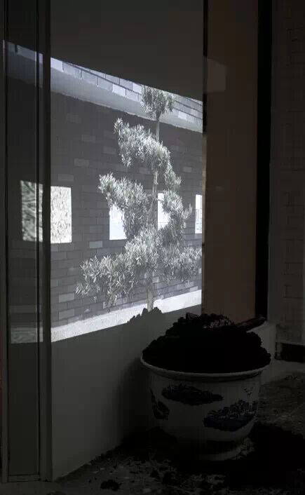 《借景》用DV拍摄三楼室外的一棵树,并把拍摄到的实时影像和实时声音“引入”二楼室内的走廊里,可以通过投影仪在室内的走廊里看到,听到室外那棵树和周围环境的变化(白天,夜晚,路人,风吹草动)。