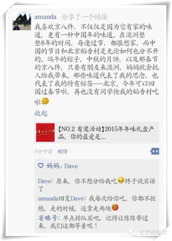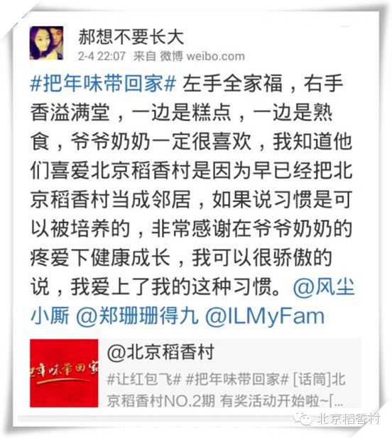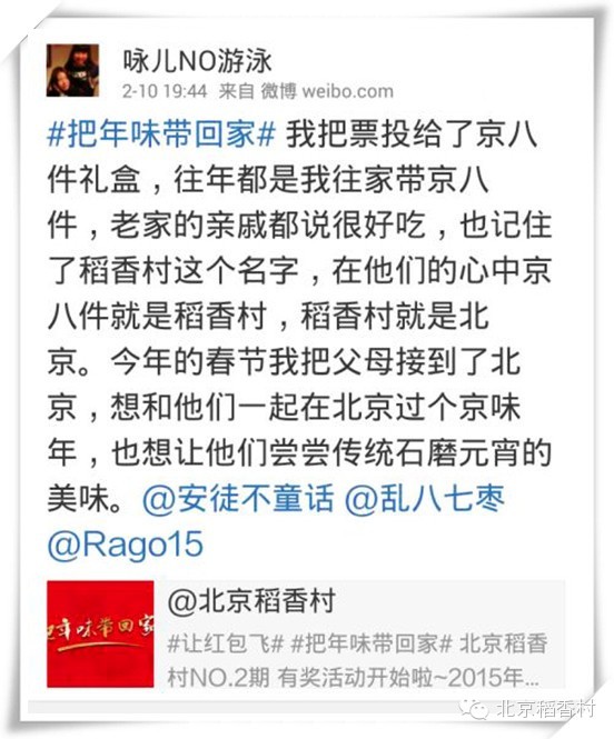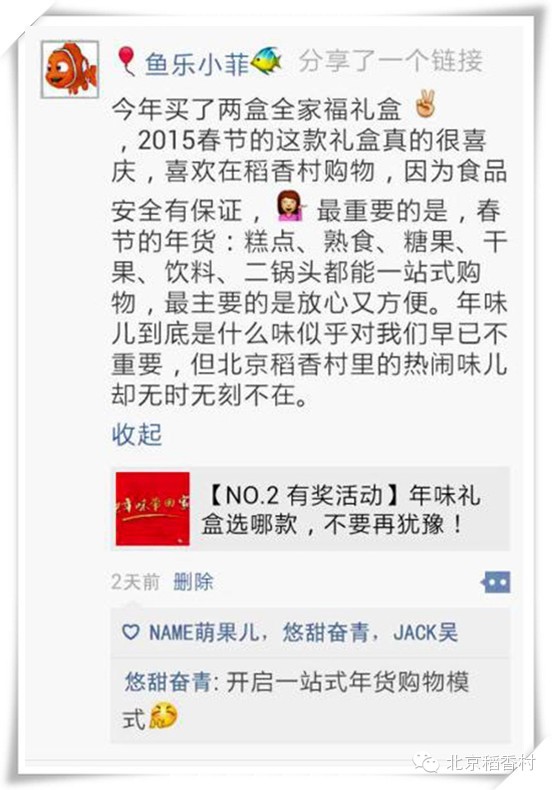 小稻点评:恭喜来自微信的稻米【老杨】和来自微博的稻米【咏儿NO游泳】获得NO.2有奖活动的二等奖京东800元购物卡。不管是全家福礼盒、还是京八件礼盒,把年味带回家,把我们的祝福与家人一起分享,永远是最美好的事情。