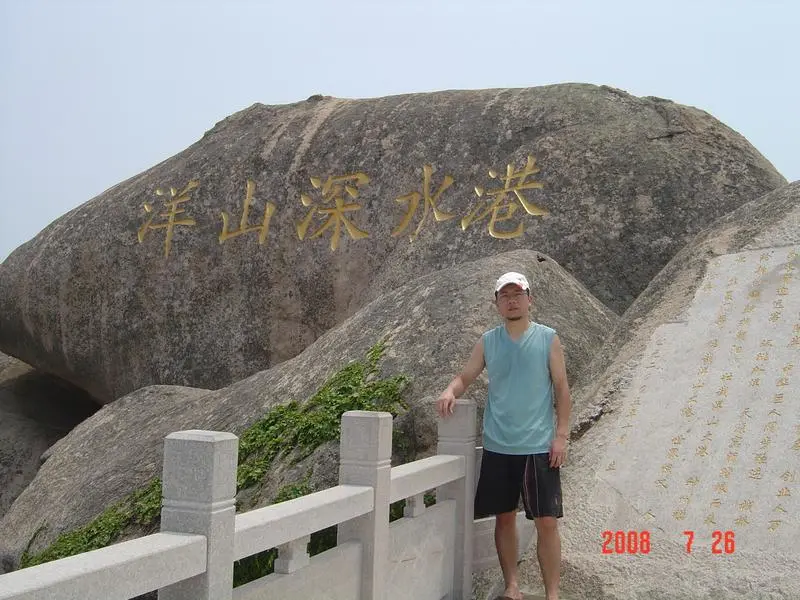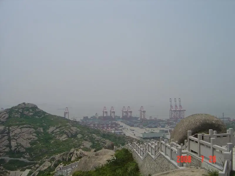 大洋山还没开发,目前港区在小洋山岛上。山不太高,全是大岩石,没有乔木,奇怪的山上会芦苇。为了满足旅游需要,开发了一个“观光游览区”,其实就一个登山步道,修得挺豪华,路面和扶手全是加工精细的花岗岩,风景一般,行头却挺隆重,因此才好意思收门票:30元。十个景点中,石龙奇观比较有趣,两条上百米的石头上下相叠(估计是一雌一雄,呵呵)。