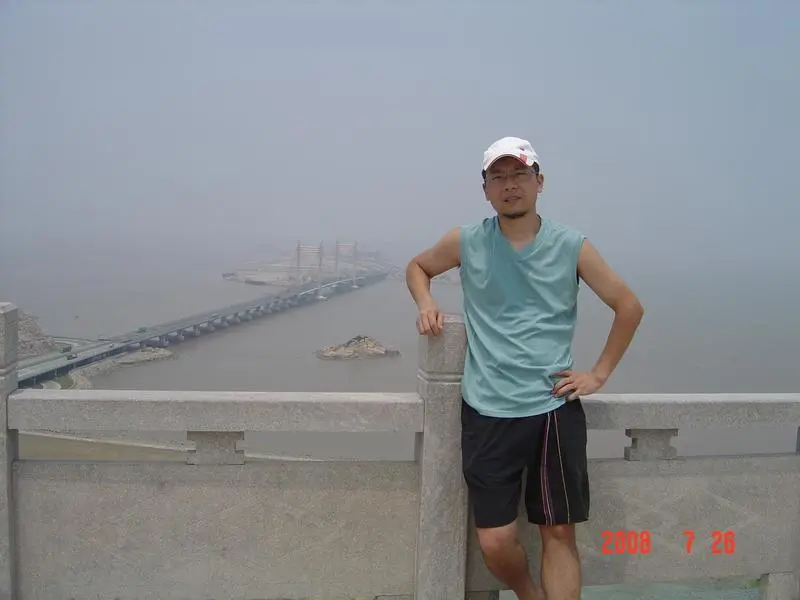 大桥全长31公里,行驶的车辆不多,多是集卡。大桥扭了几个弯,且桥下留了几个过船的高度,所以部分路面有些起伏。基本上可以开到110公里左右,两边都是海景,虽然不怎么蓝,感觉还不错。不足之处是桥栏偏高,且粗,正好影响了视线。而且,桥上不让停车,没有观景平台。