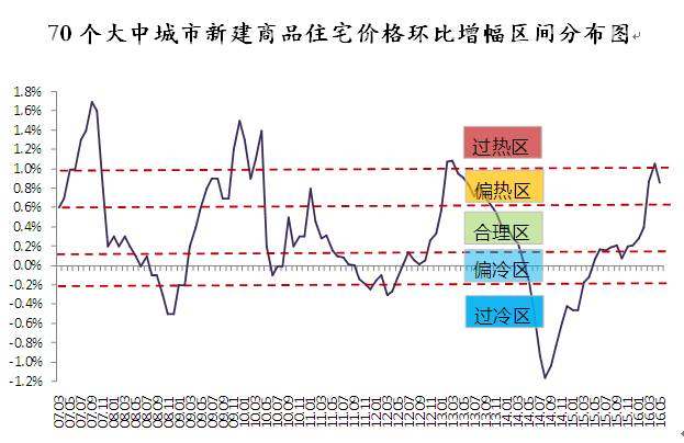 从易居研究院的对房价环比增由的五灯图来看,今年4月首次进入过热区间,5月即滑了下来。这也正说明:房价一旦进入过热区间,很难持久,比如上一轮过热区间只停留了两个月:2013年2-3月。