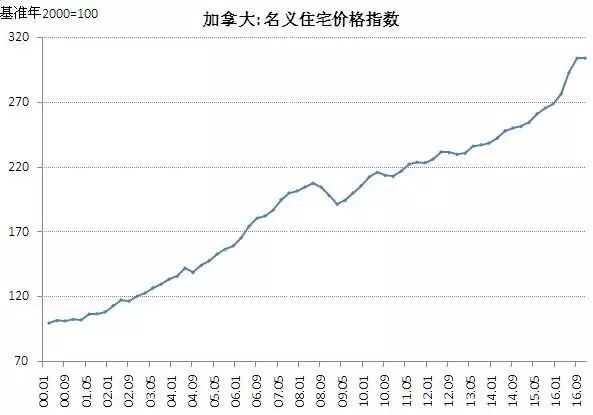 回到北美,看一个房价走势最牛逼的国家:加拿大。