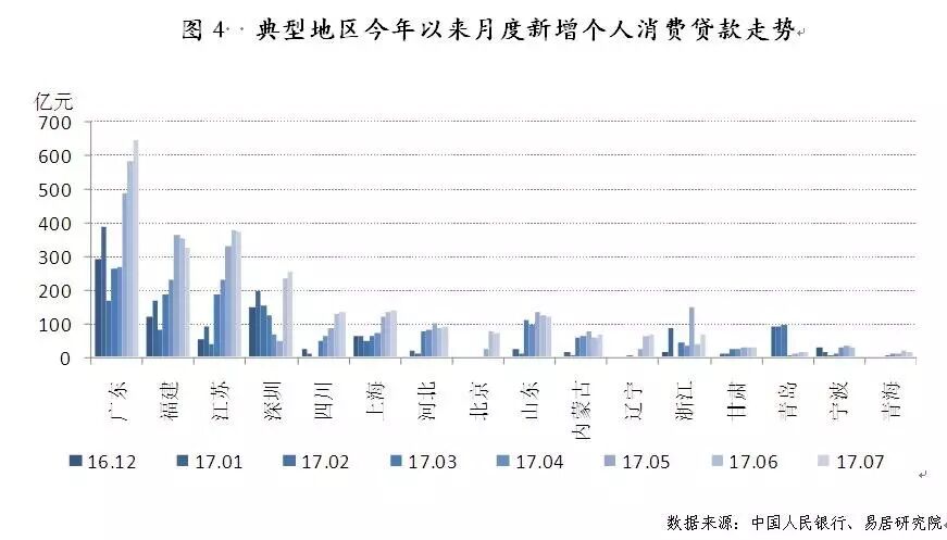 数据显示,全国多个地区都有消费贷款异常增加现象,其中广东、福建、江苏、上海、四川、河北等6地区的月度新增个人消费贷款在5月份以来都出现明显攀升,按照此前估算的3700亿新增异常短期消费贷来看,9成新增异常贷款出现在上述6个地区,说明这些区域有消费贷流入楼市现象。