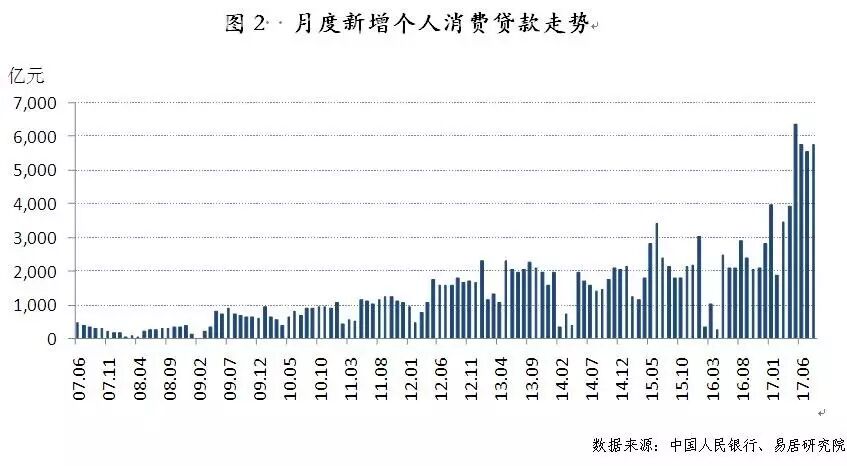 二、2017年5月以来新增居民短期消费贷款大幅攀升
