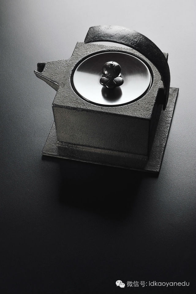 该作品是日本的传统手工艺与现代设计的完美融合。壶盖及把手利用现有的库存,由黑谷哲雪制作。此壶可用作茶壶或酒壶。内部附有过滤器。根据用途不同可以随意安装或取下。并且搭配具有一体感的底座。