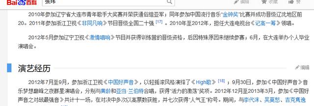 张玮的微博认证和百度百科的资料都写明自己是一名歌手,参加《中国好声音》一唱成名,曾连续多场获得人气王称号。