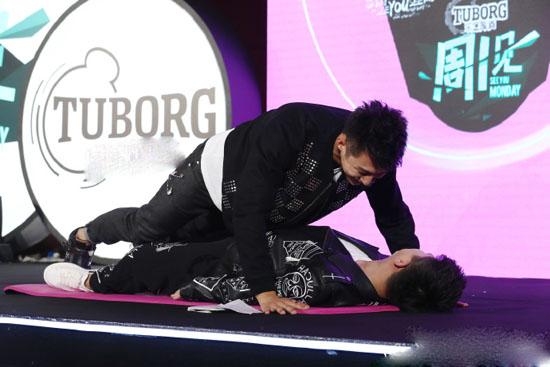 张大大变成了1米8的高富帅,黄景瑜似乎变成了不到1米6的矮子。每次合影,张大大的嘴巴似乎要亲上去的赶脚,使劲的往黄景瑜的脸部靠。