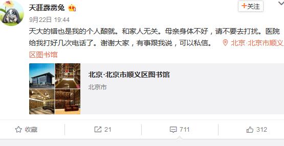 天大的错也是我的个人酿就。和家人无关。母亲身体不好,请不要去打扰。医院给我打好几次电话了。谢谢大家,有事跟我说,可以私信。