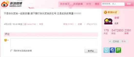 “五个人清楚,我们出去代言或做活动,少一个,商家就不能打快乐家族,就是个人行为,这也是我们一直坚持的……”但不久后谢娜删除了部分微博内容并自嘲:“好了,我知道什么最重要了,现实最重要,哈哈。就当我刚(才应)该吃药了吧……”