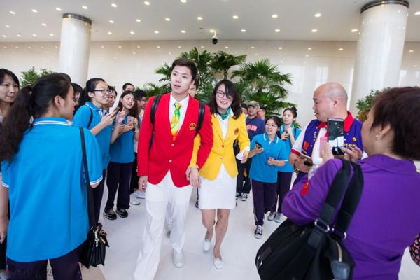 28日上午,欢迎浙江奥运和残奥健儿凯旋暨庆功表彰大会在浙江省人民大会堂举行。会后走出大会堂的时候,傅园慧被牵手,男主角竟是国家游泳队的小将李广源!