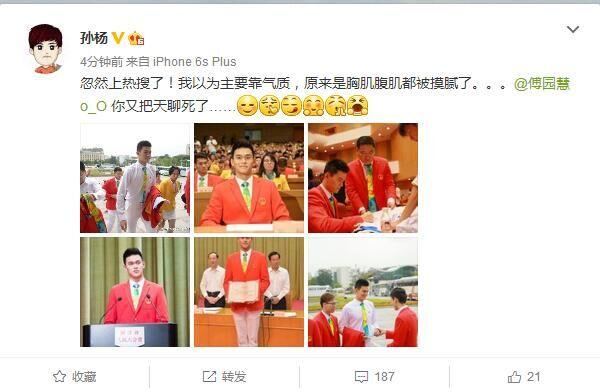 原来,真相是酱紫的,傅园慧接受金星的采访时表示,自己已经摸腻了宁泽涛和孙杨的胸肌和腹肌,躺枪的孙杨则在微博回应说,傅园慧“你又把天聊死了”。