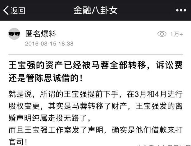 早前就有爆料说,王宝强的家产全部被转移,都还借钱打官司。