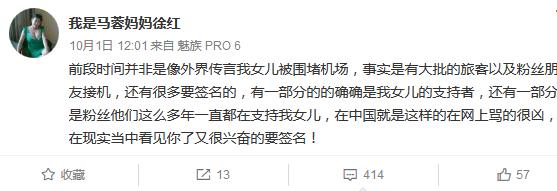 另外,疑似马蓉的妈妈徐红发了条更劲爆的内容:暗示女儿没错,而且很受粉丝欢迎,那天回机场不是媒体报道的那样。