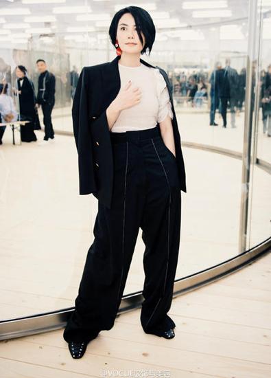 王菲亮相巴黎时装周。天后一身帅气的黑色西装,双手插兜十分有型,慵懒中透露着优雅之美。