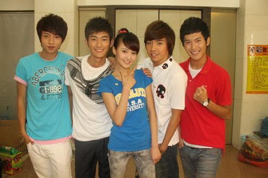 朱梓骁(右一)出演《一起来看流星雨》走红