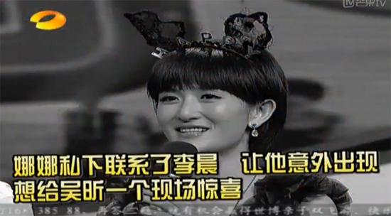 然后,在其他几位主持人的诱惑下,吴昕在节目现场给李晨打电话(其实,李晨已经来到现场,躲在后面给吴昕一个大大的惊喜)