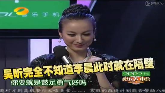吴昕暗恋李晨多年,为了圆吴昕见李晨一面的梦想。大本营曾出动几位主持人,在何炅谢娜的帮忙下联系到了李晨,终于让吴昕梦想成真,见到了朝思暮想的男人。