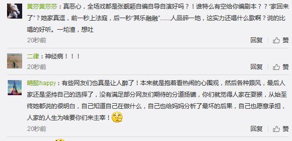 吃瓜群众只是在围观,有看热闹的,也有真心关心张靓颖担心被男人骗的,结果,张靓颖事后发了这么一条不够淡定的微博,虽然秒删,但还是被一些网友留下证据。最后,小编也想问一句:这戏到底是网友编的,还是张靓颖一家人主动自导自演的?