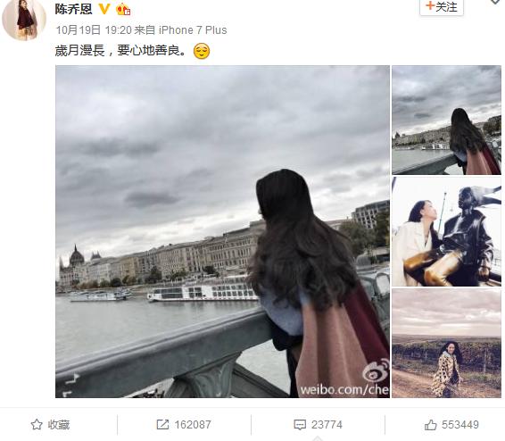 面对谣言,陈乔恩很淡定的发了条优雅的微博:岁月漫长,要心地善良。疑似在暗示那些造谣者,要心地善良。