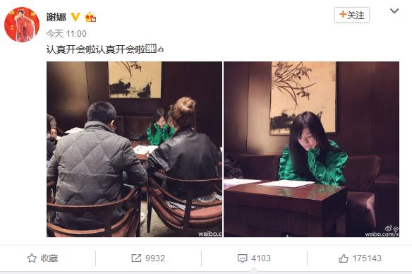 谢娜发了一条微博,配了两张照片,并配文说:认真开会啦认真开会啦。照片中,谢娜十足的文艺女青年范,而吴昕呢?驼背弯腰如老太婆,真是满屏尴尬。