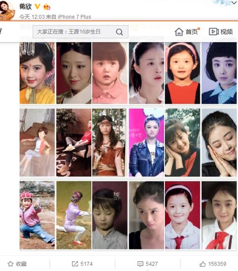 蒋欣在微博晒出大量童年旧照,自恋表示:“谢谢牛哥丽姐把这娃生得如此可爱。”