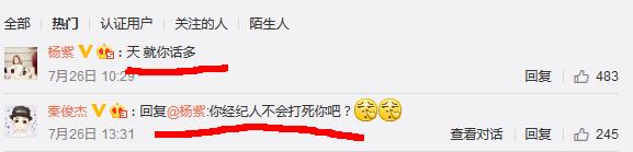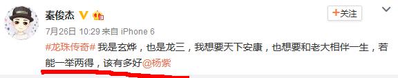 早前,秦俊杰发了一条有关《青云志》与杨紫互动的微博,口气也是各种撩,但杨紫的语气明显就显霸道: