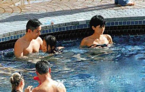 陈奕迅老婆徐濠萦与某神秘男大玩亲密,徐濠萦被曝光带着女儿与猛男在游泳池洗澡,俨然一副“一家三口”亲密无比的架势。