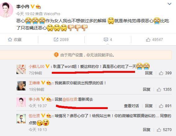 前不久因发微博力挺谢杏芳暗讽林丹出轨比吃苍蝇还恶心的李小冉。一度遭遇网友的指责:说她多管闲事。不堪网友的私信骚扰,李小冉暂离微博。