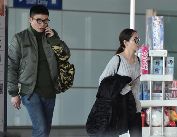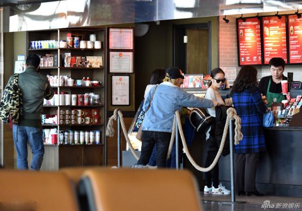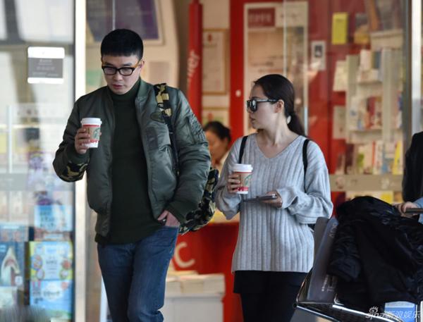 张靓颖冯轲现身机场,冯轲业务繁忙,一路电话忙不停,忙着为张靓颖接通告?张靓颖则亲自去排队为丈夫买咖啡。