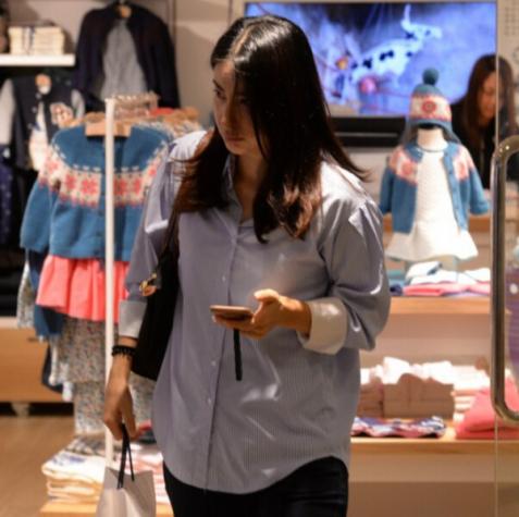 在仅仅过了3个多月的时间,郭晶晶在2015年9月3日纪念抗战胜利70周年大阅兵仪式的时候,(划重点了!)同样身穿了这件蓝白印花上衣,并且顺手还提了一个450RMB的饺子包~