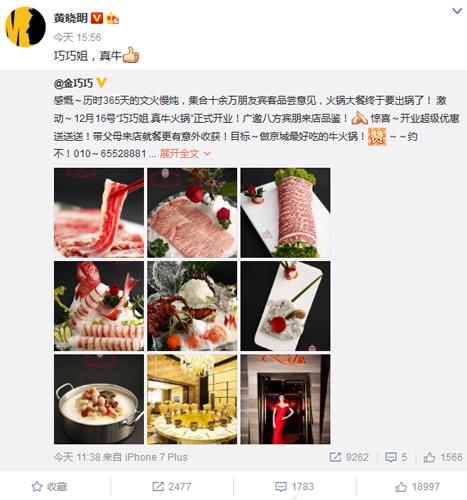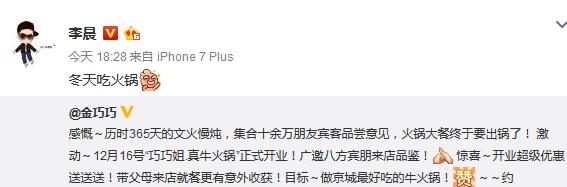 金巧巧发微博高调宣布宣布进军饮食业,不演戏的她,开火锅店了,虽然关闭了评论,但众多明星转发并夸奖金巧巧厉害。