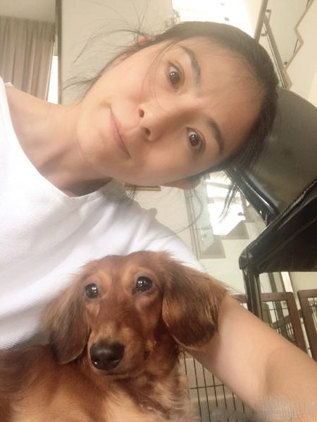 褪去了昔日的清纯,如今的杨采妮熬成了为经济奔波的家庭妇女,无聊时就在家遛狗。